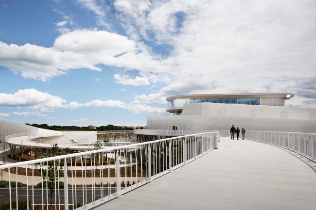 同时,来自Sète的艺术家Hervédi Rosa与A +Architecture密切合作,以一种淘气的方式演绎了海底主题,并设计了2,900平方米的白色金属网状雕塑,覆盖了这两座观景于陆地,海洋和天空间的建筑。