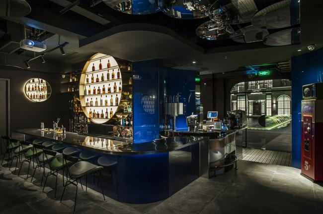 项目落址中山南路505弄——前身是上海油脂厂,曾经的十佳创意产业园。选择这里作为第一家酒吧的据点,业主本身寄予了很高的期望和要求。在这个面积仅有130平米的空间里,业主希望尽可能将手工啤酒酒吧、威士忌酒吧、餐饮区和调酒机器人等多元的业态纳入其中。对此,一持工作室准备从两个层面来进行创作。
