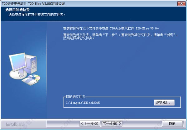3、软件默认安装目录【C:\Tangent\TElecT20V5】可以自行选择;