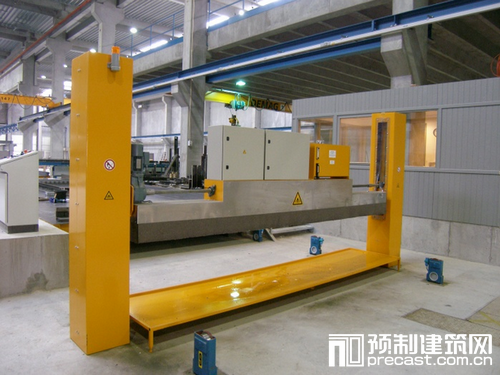 自动清扫机由刮板、特殊刷滚、除尘、升降等部件组成。 当运动模台通过时,刮板下降到模台表面,刮除表面的混凝土块,被刮下的混凝土块由集料槽收集,根据设计由人工或输送带移走,同时滚刷下降到模台表面清除小颗粒的混凝土粉屑,吸尘器工作吸走粉尘。