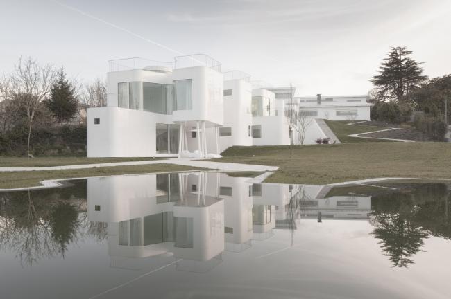 原有房子用于充当家庭空间和社交互动空间,以及第一代房主的卧室。每个家庭成员都有其各自的独立性,同时也保证了与其他家人有交流的空间。一面独立设计的多层墙壁,既是构造的一部分,也是保温隔热、与户外环境隔离的隔离层,外形的蜿蜒曲折,保证了家里各种各样的活动。空间是由时空的延展来定义的,时空中的物质在拓扑方面适应其内部发生的一切。新房子的外形是一套连续而完整的中性包装,没有棱角,没有颜色,没有纹理,在这个包装中,生活与行为是主角。