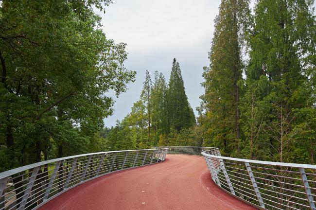 绿道全程采用钢架与预制件建造,从而降低对公园生态的影晌。