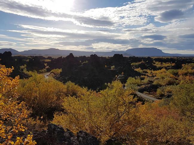 Dimmuborgir 的名字来源于冰岛语“黑暗城堡”或者说是“黑暗都市”,它形成于2300年前的一次巨大的火山爆发,这次火山爆发为它创造了独有的特征和荒凉的景观效果。人类从不缺乏猎奇心理,冰岛奇特的地理特征吸引了成千上万的游客来游览黑熔岩场,为这个国家带来了勃勃生机。