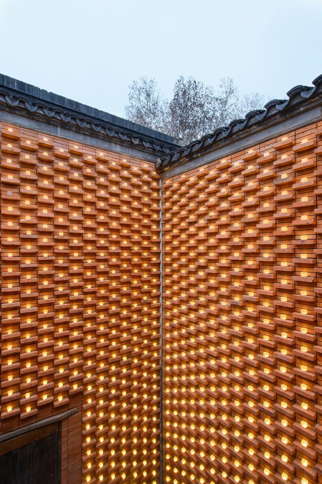 红砖的秩序拼法所表达的是空间与材料的关系,那千灯墙所影射的完全就是文化与视觉符号。
