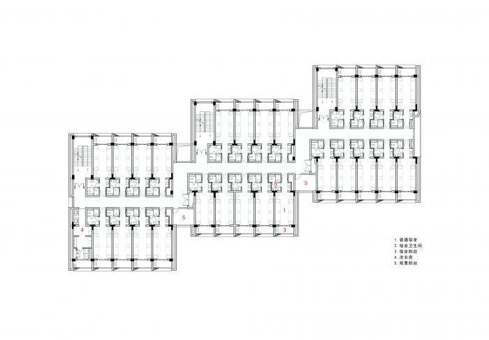 本项目所留下的遗憾是,受限于满足学生住宿人数要求与不能突破总建筑面积两个因素制约,未能将三个单元间连接部北面的活动室实现,本项目只实现了南面的观景活动阳台。原设想北面空间可复合活动室、茶水间等便于学生生活又便于校方集中管理的多功能空间。