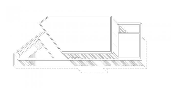 二层的面积较小,容纳了私人住房,即三间卧室套房和儿童活动室。二层相对于一层呈现不对称的布局,加上透视效果的影响,使得从街道上看过去房子逐渐变小,而从后面的游泳池看过去,房子又呈现出相反的外观效果。