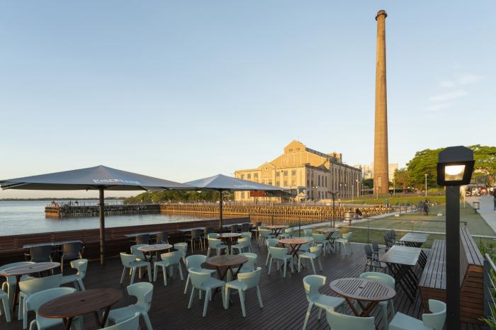建筑采用了轻盈与透明的轮廓,浸没河水中,并展示了其金属,玻璃与木材的材料性质-其中垂直密封的无色玻璃连接着天花板和地板。建筑的工业感与为阿雷格里港市过去一个世纪都在供电的旧发电站相吻合。今天,该旧发电站被阿雷格里港列为历史遗产与文化中心,并为其命名“Usina do Gasômetro”。