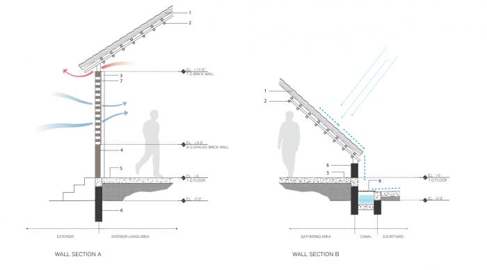 纽约著名建筑师Toshiko Mori森俊子无偿设计了这个项目,其中的一个建筑已经赢得了友邦保险纽约分会奖,并被选为参加2014年的威尼斯建筑双年展。该建筑使用的是当地材料,当地建筑商也将他们处理竹子、砖块和茅草屋顶的专业知识与建筑师分享。这些传统技术结合了Mori的设计创新。惯常倒置的斜屋顶从降雨中收集的雨水将会使家庭节约大约40%的用水。