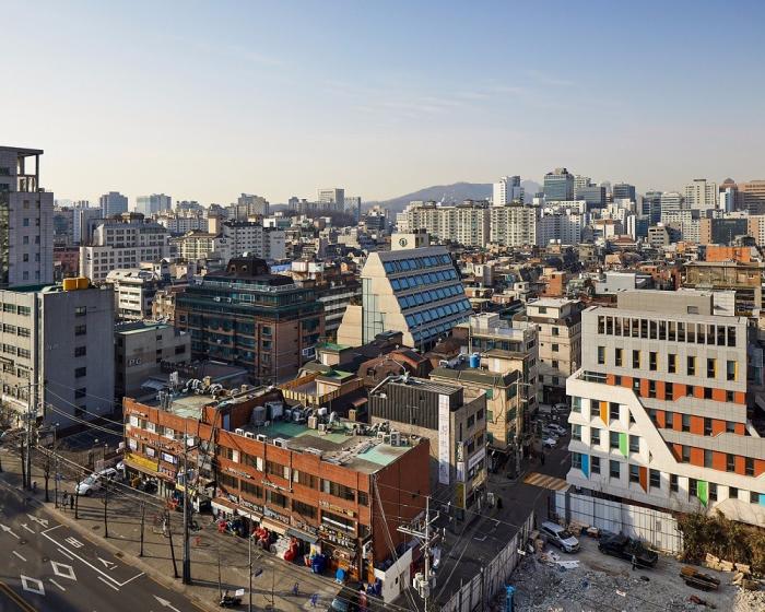 坐落在首尔江南区中心的树屋拥有72个住房单元,它是一个共同生活的综合体。大楼内的微型工作室和微型电梯都是为单身专业人士和他们的宠物专门设计的。树屋的中央是一个室内花园,这里还有公共工作空间、休息厅、公用厨房、洗衣室以及宠物洗澡间。