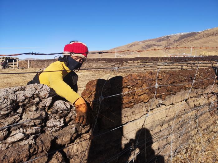 就像这位巴塘高原上的藏族女用干掉的牛粪来堆砌出独特的牛粪墙,充满了人与自然和谐相处的智慧。
