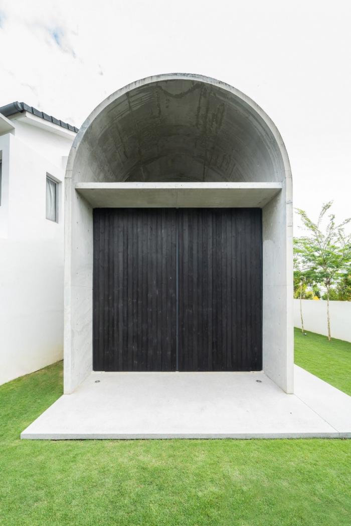 住宅的拱状屋顶向外延伸,下部的拱形空间则作为起居室使用。拱券的延伸感创造出空间的连续性,地面和天花板均由混凝土建成,统一的材质更进一步突出了这种延展的特质。在此基础上,两扇巨大的门面向花园敞开,空间的延伸性由此得到进一步强化。坐在室内,窗外景色一览无余,建筑与自然的联系可见一斑。
