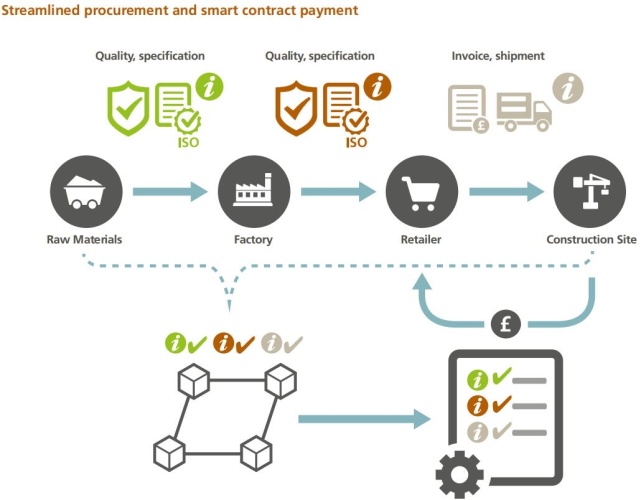 在设计者、承包商、供应商越来越重视材料采购供应来源的今天,区块链系统为所有利益相关方提供材料的全部信息,包括生产、质量保证以及运输直到交付现场的追踪,使得标准化的采购流程更加透明公正,减少在材料供应方面可能出现的问题。