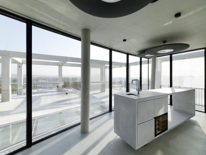 这个真正的房地产公司总部,位于通往奥地利格拉茨最高流量交通入口,为平坦的过渡区域带来了清晰和开放的新地标。此外主要的目标是在一个新兴时代背景下,通过改变他们的品牌图标,在整个建筑立面上,根据文脉、正式的、一以贯之的为一个年轻的公司“建立身份”。