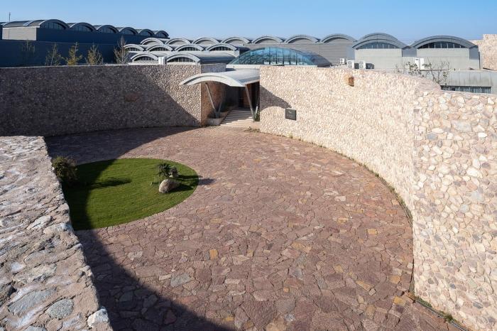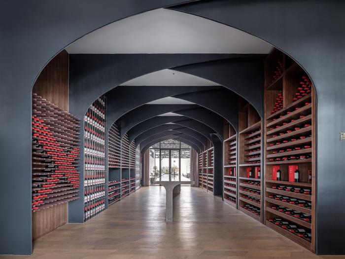 酒庄建筑由一道圆形石头墙围合而成。大圆内另砌一个小圆,做为酒庄的主入口。其内部由办公区、品鉴区、生产区、橡木桶酒窖、有机餐厅、酒店客房等功能空间有机组合而成,总面积为2.5万平米。