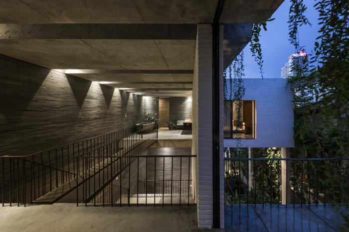 在快速城市化的背景下,越南城市绿化设施的缺乏引发了各种城市问题:空气污染加剧且无法净化,城市无法保留雨水,街道冷却空间不足,以及人们无精打采的加班。这栋住宅是“树木之家”系列中的建筑之一,它承诺通过提供可持续和环保的建筑,为城市景观绿化和改善人居环境做出贡献。T它被热带果树所覆盖,为每个家庭成员创造出宁静祥和的空间,同时也为这座快速发展的城市中心地带保留一块绿色角落。