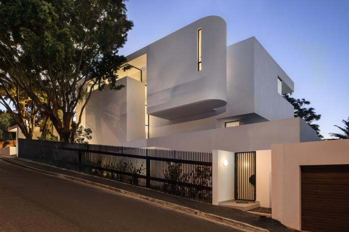 该设计以喷薄而出的雕塑感为这座总面积600平方米的独立住宅营造出奢华的氛围。项目巧妙地保留了基地内的所有树木,充分利用原有植物所形成的"丛林"来保护业主隐私,与流行于开普敦大西洋沿岸一带暴发户般的焦土政策完全划清界线。