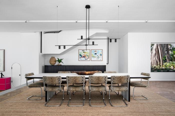 大型环绕式烧烤阳台、游泳池和草坪为底部入口层增添了丰富的功能,从这层可以轻松到达起居、餐饮和厨房区域。踏着具有丛林特色的夸张楼梯迈向上层,一座连通全部四个卧室的宏伟观景台使这个成长中的家庭得以随时共享开普敦的大西洋海湾风光。