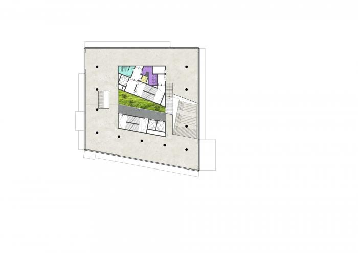 另一方面,建筑的悬浮体量创造了各类舒适的城市灰空间:如入口大台阶、下沉庭院、广场、水池等等,以应对深圳的亚热带气候。