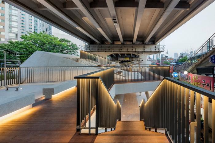 为了打造一个供本地社区使用的公共空间,首尔市区充分利用了高架桥下方的空间。在拥挤的大都市里,这类空间通常是无法使用的。这次的项目是一个试验性的项目;它要通过改造高架桥下的通道,把原先昏暗清冷的空间变得生动鲜明以提高生活环境与周边所在地的景观。