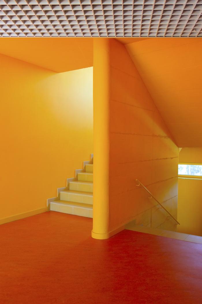 这个项目应对了一个简单的需求:连接两座教学楼之间的空间。空间既是横向的也是纵向的,设计师便在这里创造一个供学生们休息时社交与放松的场所,以及一个露天圆形剧场。