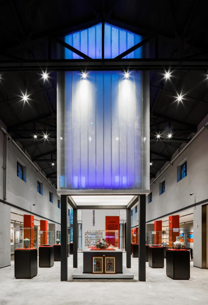 同时,设计保留了本建筑的输出功能,定位为文创品商店。采用竖向u玻材料,再现原有烟囱的高度,白天的半透明乳白色和晚上通过照明产生的效果,成为进入园区后的标志发信塔。
