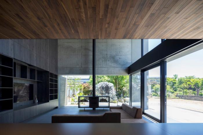 这个独立住宅是为一个儿科医生和其家人设计的,住宅位于经常会下大雪的日本山形县内。设计的初始想法是想要利用相邻的房子,也就是客户父母居住的房子内的石头花园,作为“借用的景观”。极具特点的巨大厚重的混凝土建筑外立面利用外墙的保温层确保了即使在仲冬时期室内温度也舒适宜人,百叶窗帘和隔热木框窗户进一步使这个房子适应它所在的多雪环境。