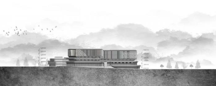 在色彩与材料的选择上,采用分段式立面设计,在不同高差对城市界面做出不同的回应,底层采用曲线造型,包裹感和时尚感并存引流人群;上部分采用现代化直角立面,有利于空间的灵活使用,内置隐框玻璃幕墙,外设翻转竖向构件,营造序列感,适当增加传统元素,呼应传统文脉,同时配备广告位、LED等跳跃元素,色彩变幻的灯光效果,使商业综合体成为区域聚集的中心。