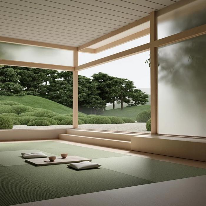 在创作“日式花园”场景系列的过程中,SixN.Five团队将日式建筑中的古典元素与风格化的植物群相结合。这种被刻意保留的平衡完美捕捉到了人们对简朴的渴望,这是花园形式的产生的驱动因素。为了表达日式极简、超现实主义、静谧的气氛,设计师在每一张图片中,采用了精心修剪的树木,桦木特色符号,以及灰蒙蒙的山景,特意保持了语言的延续性。最终形成的图像是被绿色植被和自然包围的超现实主义与舒适宜人的作品。