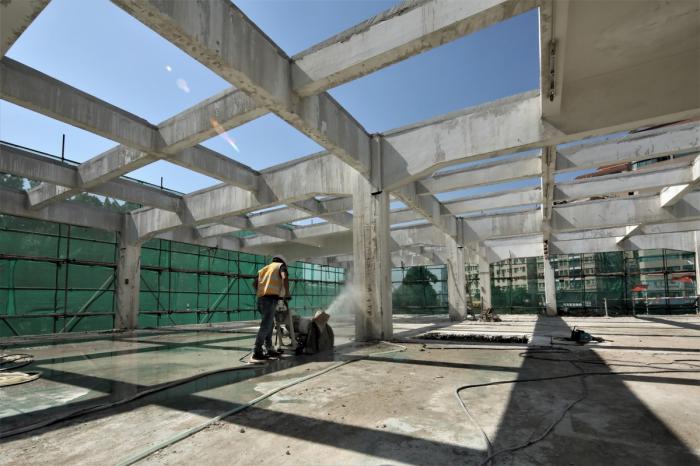 减量建造实验——桥头废墟花园由趣城工作室(ARCity Office)主持创作和设计,2019年9月开始施工,2019年10月完成。施工的主要工艺是用切割机对混凝土楼板、墙面、地面等进行切割。切割剩余的结构框架体成为废墟花园的主体,切割剩余的楼板残片被部分利用作为休息坐凳装置。该项目遵循了可持续发展的5R设计原则(Revalue、Re-new、Reduce、Reuse、Recycle),通过减量建造形成新的空间状态。