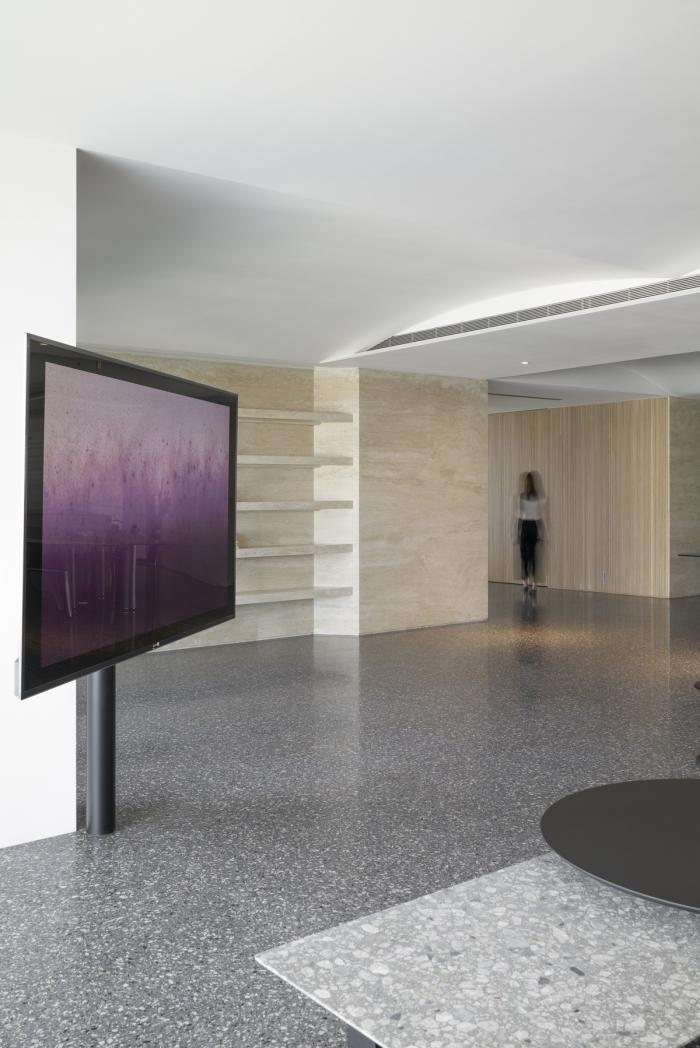偌大公共区域,每处由材质建立份量的底墙都是一个场景,随家具摆饰及生活演化定义其属性,过道或座席、线与形、虚与实,都是边界弹性而模糊的存在。