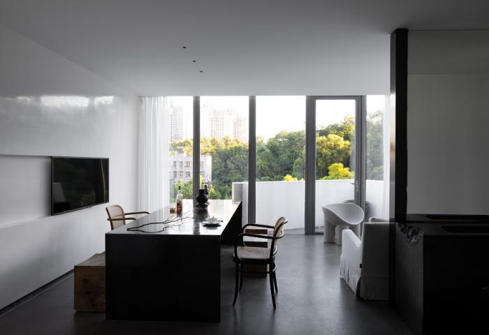 各个不同布置的包厢,没有过于华丽的装饰,淡淡的、缓缓的米白色包揽大部分的空间格调。保留天窗引入自然的阳光,平日里,日光会缓缓从钢板材质的肌理表面移动到另一方的沙发区,婆娑变换的光影不禁让人感叹自然本质的美意。火炉的火焰散发的温柔,把空间滋养出一种平和静谧的气质,停下来体察其中藏有的细微美好。