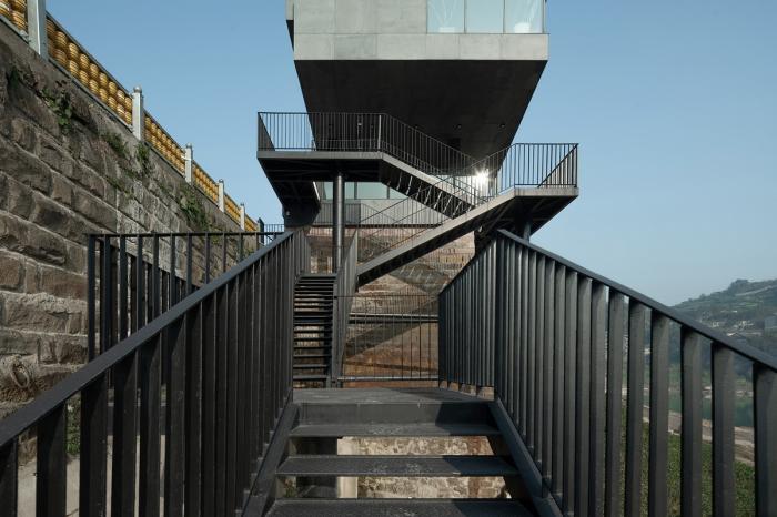 △ 隔江远眺 ©刘国畅 创造契机,挑战制约 为解决条石垒成的将近11米的崖壁高差,我们用一座宛如山城步道的折行钢结构楼梯来连接建筑底层和位于江边的室外停车场。作为整个建筑的前景,打破了建筑本身体量的秩序,在拾阶而上的行进中以达到不同的空间体验。