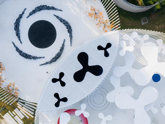 Wutopia lab受上海惠建委托在湖州完成一个钢铁花园——White Upland。这个3300平米的仲夏夜之梦花园是该公司湖州房产售楼中心的销售前场。这也是Wutopia lab第一次把建筑,景观,室内,照明,装置艺术综合在一起而创作的魔幻现实主义场所。