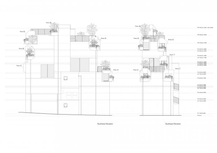 该项目是位于东京丰岛区的住宅和画廊综合建筑。一棵树是由树干,树枝和叶子等不同特征的部分有机结合在一起的,我们想要创造一种类似树一样的有机建筑,由植物褶皱和混凝土盒子的不同层次的部分组合而成。