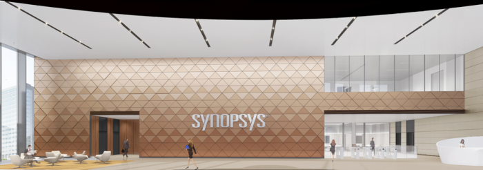值得一提的是大堂接待台的设计,它既是新思科技(SYNOPSYS)英文首字母“S”的形状提炼,也以流畅圆润的曲线体现了新思科技开放包容的企业文化。