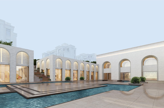 华盈尚景项目位于山东省烟台的招远市。该项目整体上以一个总面积约1.3万平米的下沉中轴广场贯通南北。中轴集合了景观、社群活动空间、配套商业等功能。中轴最北端是大型绿地广场,最南端是堪称整个社区魂魄所在的馥香湖。而住宅产品布局也是由南北高层逐渐向中心的多层、低层过度,弧形天际线,意境优美。其中独具特色的合院、 叠墅产品在布局上恰好位于下沉中轴广场两侧,整个项目建筑风格统一多样,高层大都会,低层简约法式,而中轴广场则是现代罗马风,整体美观大气协调,细部各有特色。