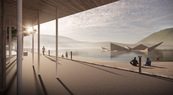 瑞典怀特建筑工作室(White Arkitekter)在挪威卑尔根设计了一个浮式水池,该水池将作为城市海岸线重建的一部分,建成一个名为True Blue的海滨公园。