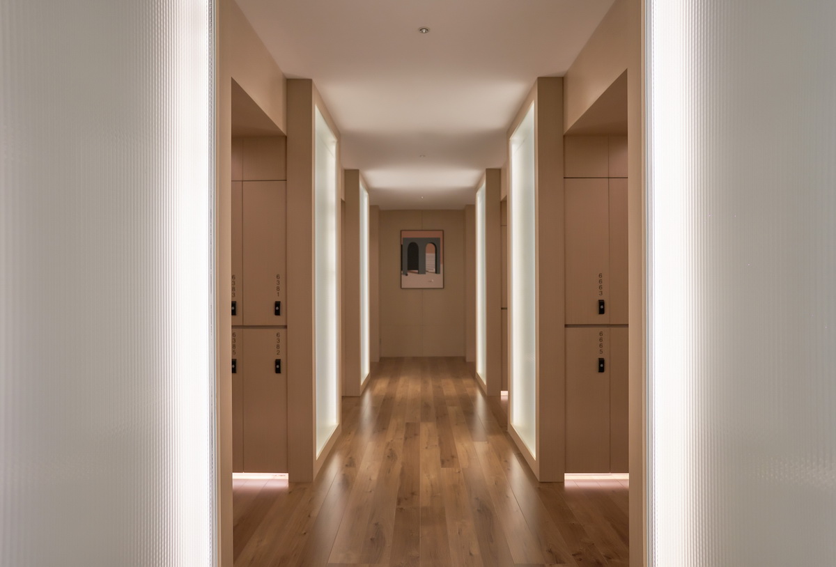 被景观楼梯自然分割的两侧空间,是主要活动区。它们像城镇街区围绕着主城区“广场”向外生长,功能之间的动线如川流不息的“街道”。这其中最惹人逗留的是“树洞”长廊,它位于餐厅和水吧之间,以“儿童乐园”的名义存在。几何简化后、树洞般的的长廊形式感强、层次丰富,提供多种独特角度,许多人在这里拍出了不输杂志封面的大片!