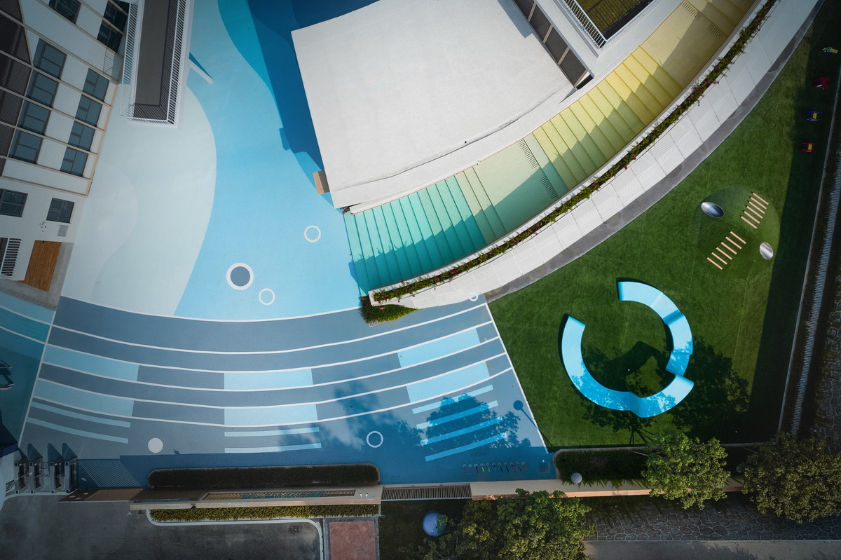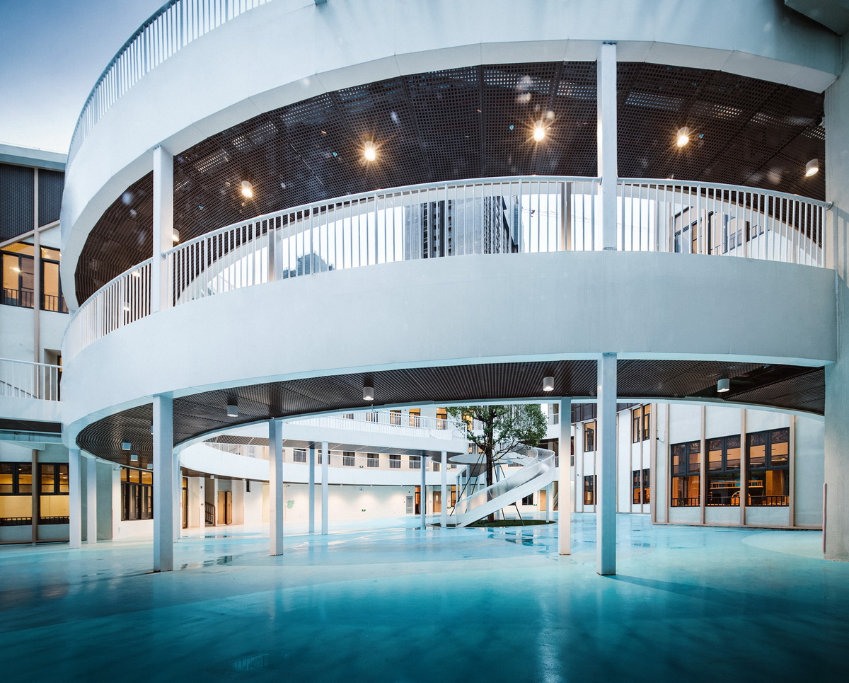 内环与外环的连环开放打破了空间的固定关系,将不同属性的功能空间联系起来,孩子们汇聚于此去体会颜色的美感,世界皆是一片海洋蔚蓝,空间的不确定性或许会成为孩子们空间记忆和成长的一部分,所有关于成长的印记和思考在岁月浮沉的不经意间铭刻于空间的每个角落。