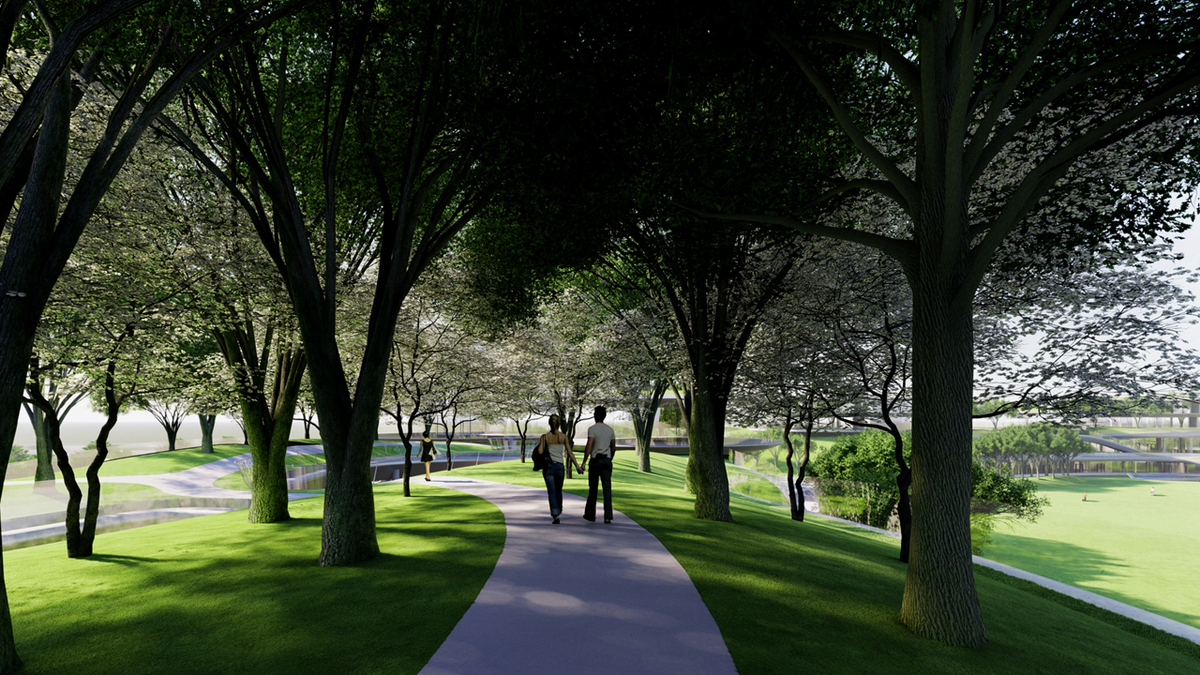 △ 通过将交通和功能放置在地下,解放了地面空间,成为公园。市政道路、城市交通枢纽、火车站和商业平层相连,无缝连接,便捷高效