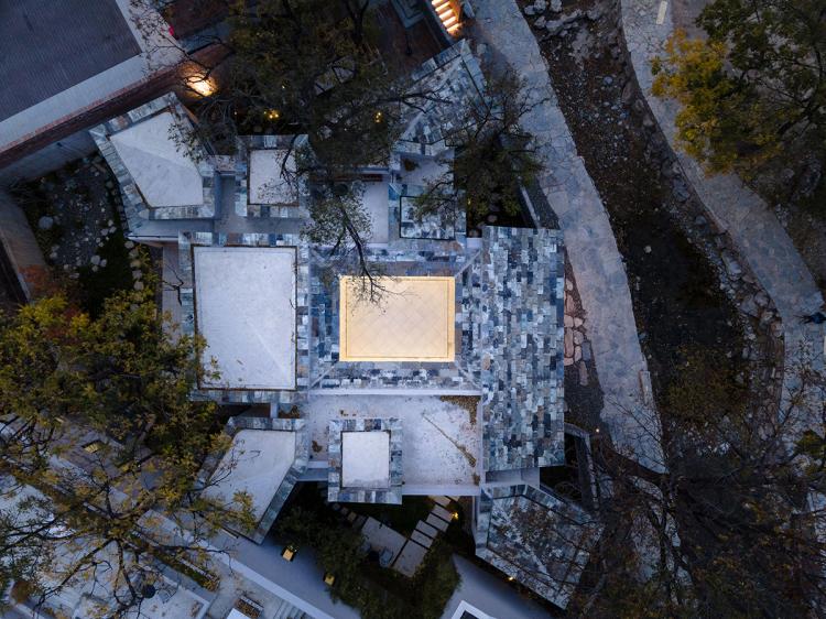 上到屋顶平台,穿梭于“石块”之间,被树木包裹,被远处的山守护,即使作为过客,也留下一片诗意的栖居。