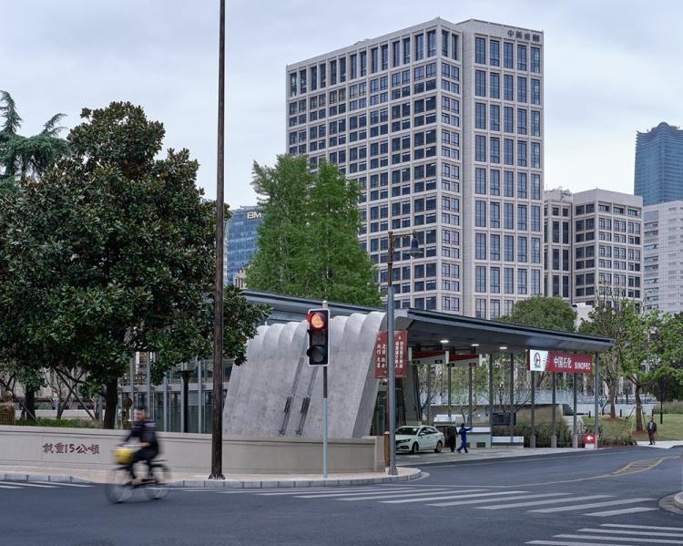 中石化一号加油站位于苏州河边上滨河景观带之中,靠近黄浦江与苏州河的交界处。