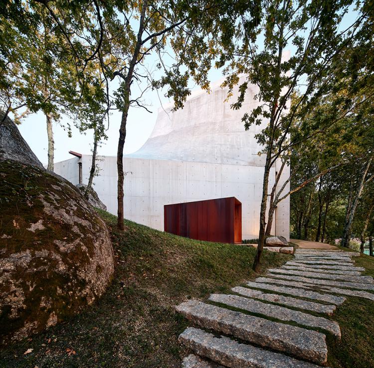 建筑师Nicholas Burns在葡萄牙北部的一处宽阔的私人庄园上打造了一座混凝土小教堂,该小教堂低调地坐落于林间和花岗岩砾石旁。