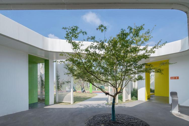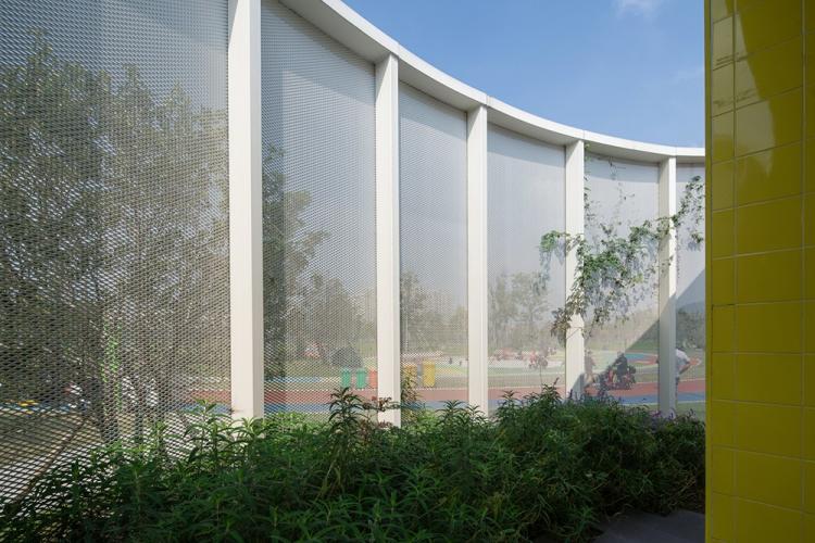 休息驿站周边景观植被良好,我们在洗手池及休息区等市民容易停留的地方,把围网打开,将公园的景观引入建筑中,与建筑中小庭院的景观“重组”,形成“不同维度景观相叠加的奇妙现象”。