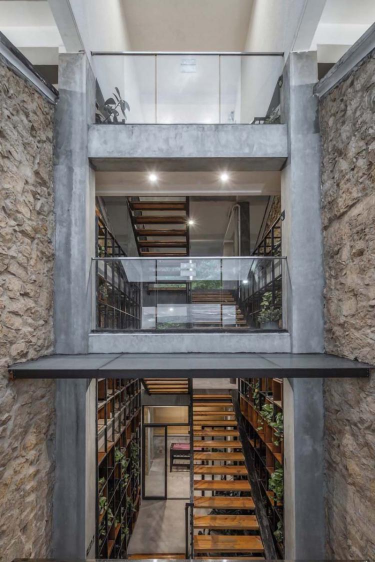 新部分营造当下民宿较高品质的功能体验,老部分保留当地建筑的风貌特征。新老之间目的明确,产生戏剧的对立关系。又依靠中庭、楼梯和挑高的灰空间,将这种分层的冲突模糊并试图调和,最终达到空间上的统一和稳定。