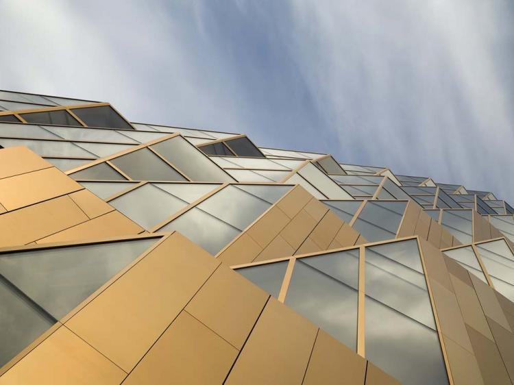 RCC是世界最领先的铜生产商之一,因此立面上三角形的设计灵感源于铜的化学结构。建筑的顶部融入了RCC的新logo,反过来,该logo也是因受到建筑的启发而重新设计的。