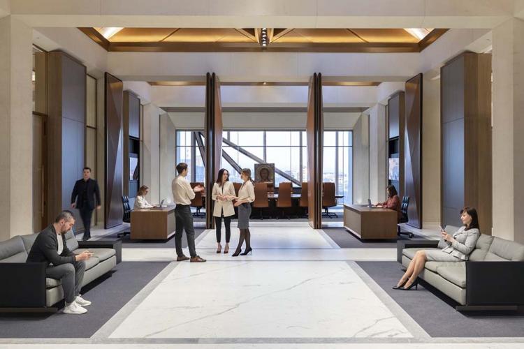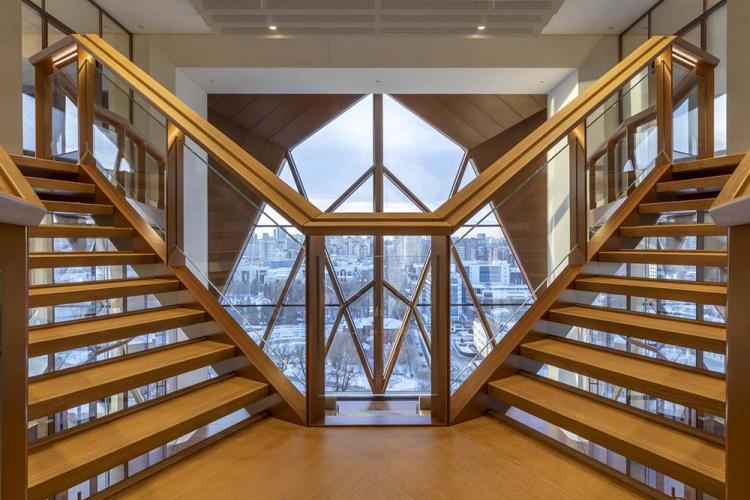 办公平面布置的出发点是将该总部打造成一个“员工之家”,而非传统的大型公共工作空间,办公空间是更加私密的,且具有家庭生活空间的尺度感。项目顾问团队研究了业主对空间的运作情况,设计出了创新型模块化空间系统。然后与内部结构团队合作,实现快速施工,并确保员工能集中工作状态下理想的自然光照水平。