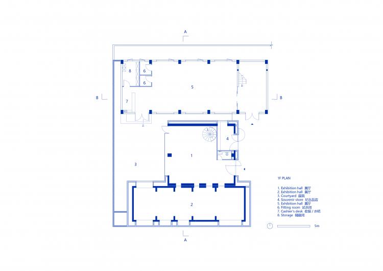 然而旧建筑的形体并不消隐,它由三个体块构成,由南向北呈阶梯状堆叠,我们依照层数,将其定义为1、2、3号楼。1号楼临街面有较多窗口,内部被墙体分隔为五个独立空间;2号楼东面有一颗高大的玉兰树,建筑内部为二层通高的空间;北侧的3号楼早前被改建为办公区,外立面为方窗阵列。