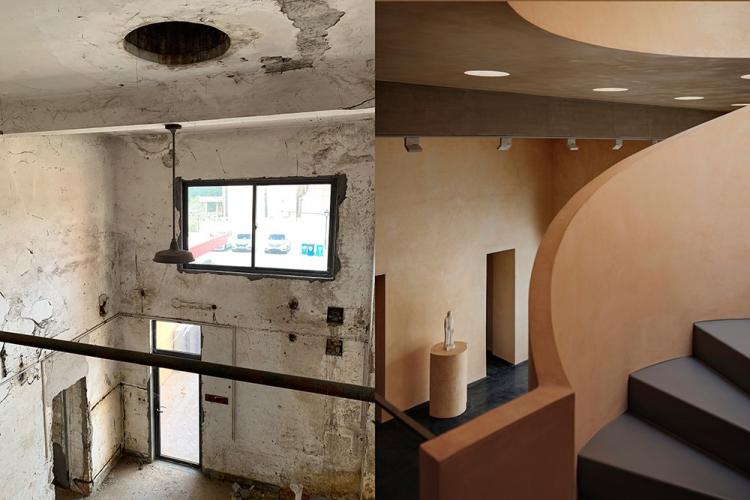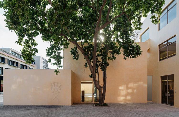 改造完成后,这棵玉兰树就像“极乐场”的法器一般巍然庄重。在高大繁密的枝干掩映下,简洁的建筑形体更显隐忍。沿街立面门窗“避虚就实”的改造,为整栋建筑添了几分引人探究的趣味。