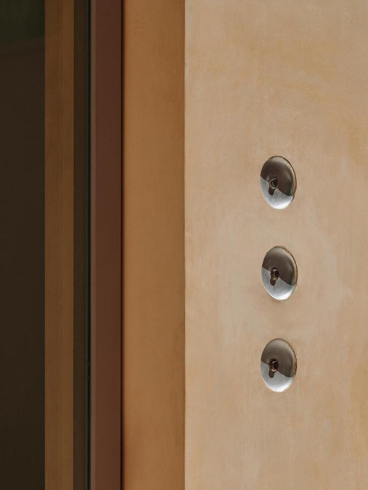 一侧的落地窗与室外庭院相连,尽可能的去模糊室内外的边界。主厅南侧有四个门洞通往一层“暗室”,以颇具秩序感的方式来区隔明暗。